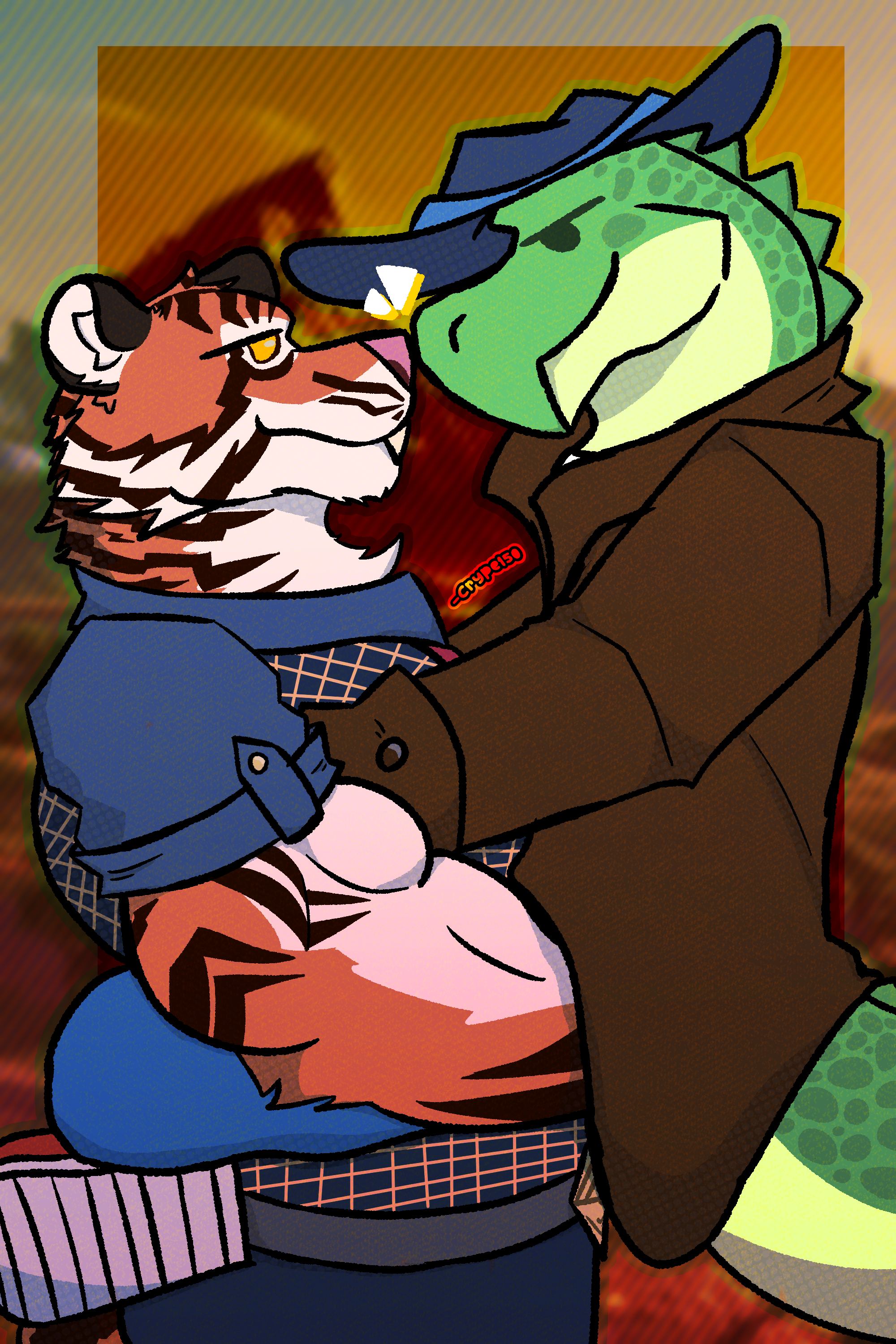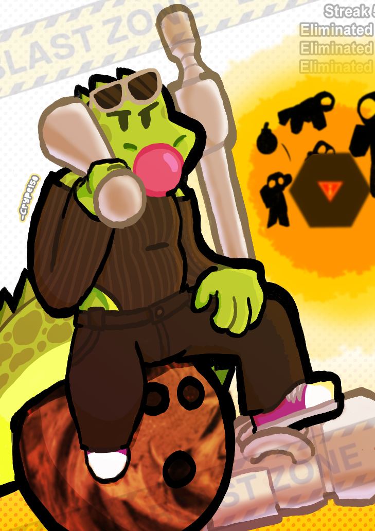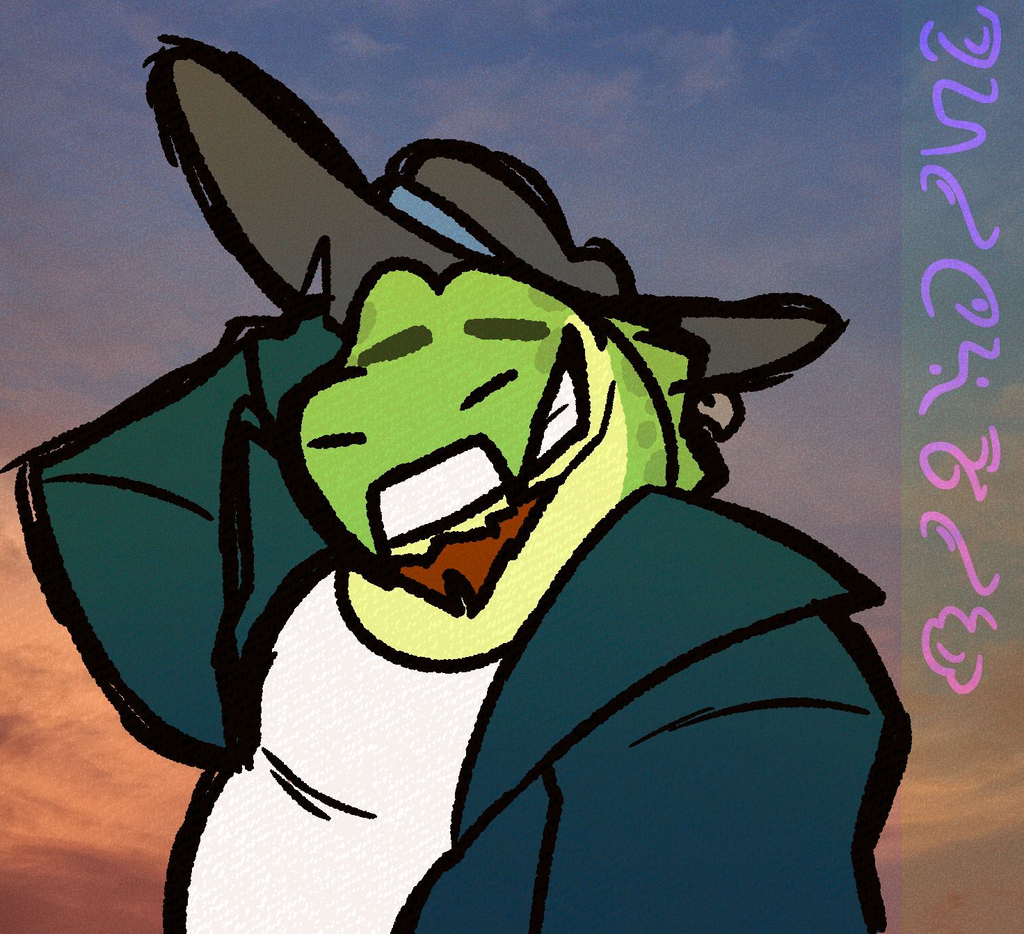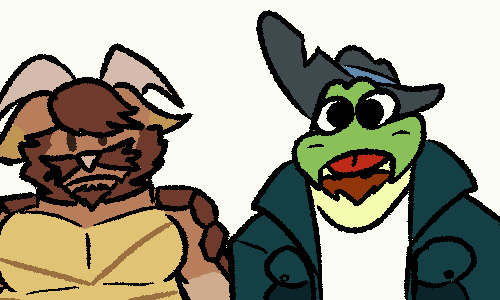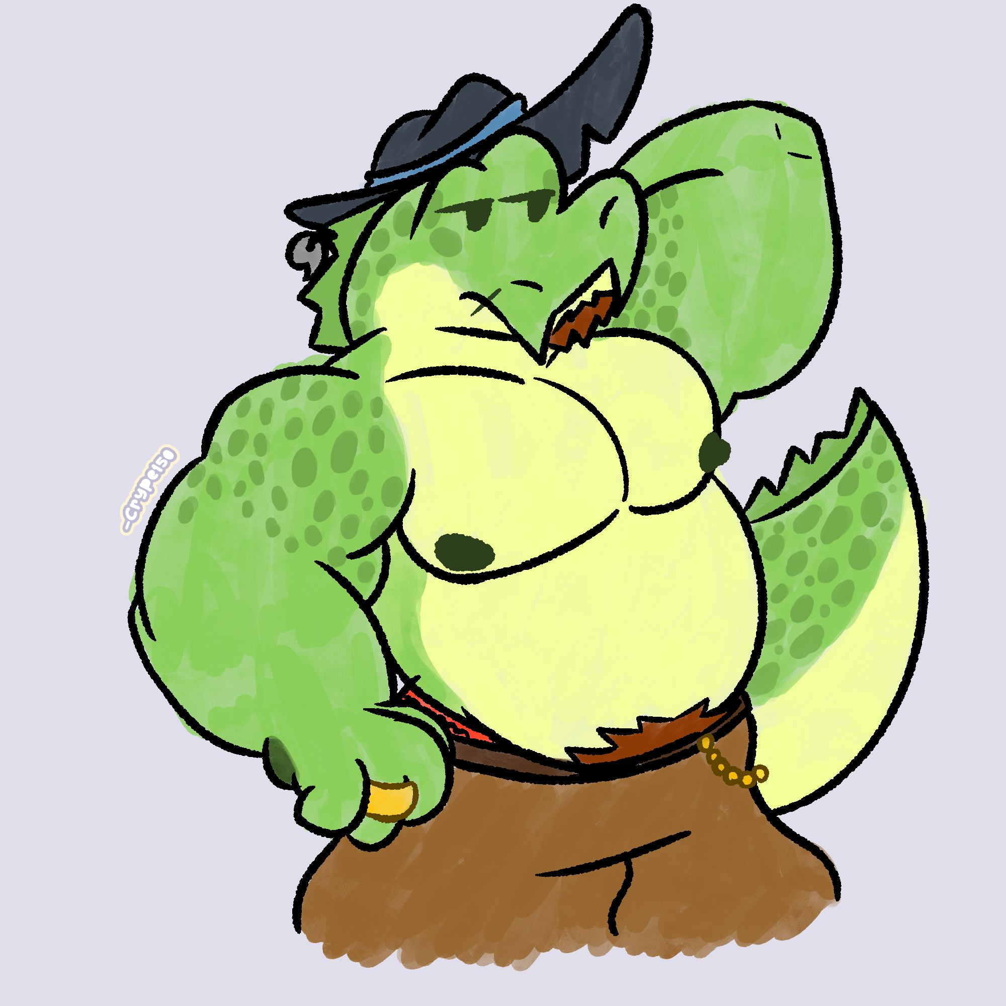 Greg (or Gregory Morsor) is a young adult, part of the Crocodilian species, who's favorite activity is parkour and thievery, even though he tends to be very clumsy and isn't the most fit (or tall) acrobat out there. He's openly homosexual and goes by he/they pronouns. He never loses his iconic blue fedora hat, it's extremely important to him due to REDACTED REDACTED REDACTED REDACTED REDACTED. He also wears a silver earring that by it's shape references one of his all time favorite fictional story.